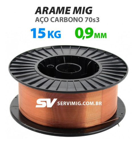 Arame de solda mig bitola 0,9mm, utilizado em processos de solda em aço carbono, ferro.