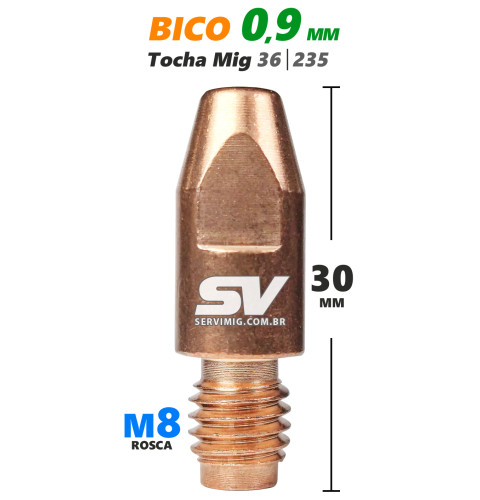 | Características | Bico de contato Mig 0,9mm |