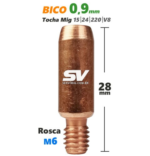 Bico utilizado em tocha processo mig modelo: Plus 15 / 24 / AK 15 / SU220 / V8, entre outras