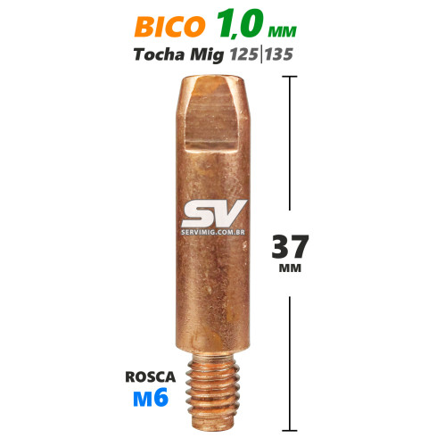 Bico utilizado em tocha processo mig modelo: 125 / 135 , entre outras