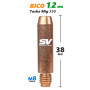 O bico mig tem a função de promover o contato eletrico entre o arame e a fonte de soldagem.