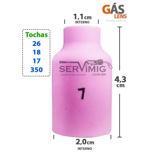 Este modelo é o bocal gas lens tig n7 - 4,3 cm de comprimento