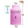 Este modelo é o bocal gas lens tig n8 - 4,3 cm de comprimento