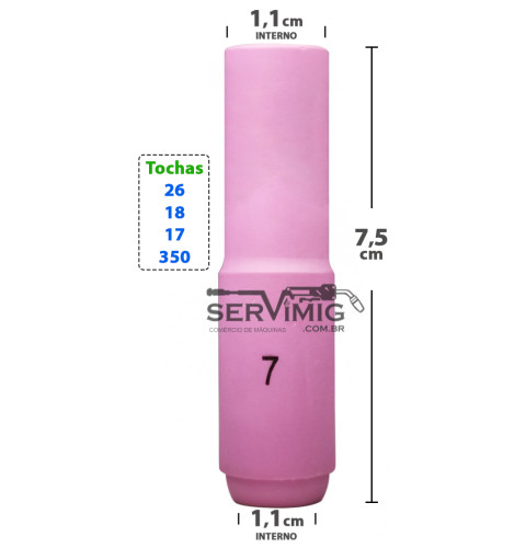 Este bocal Longo tig 7 é compativel com diversas tochas no mercado, como a tocha tig 26 - 17 - 18 - 350 |