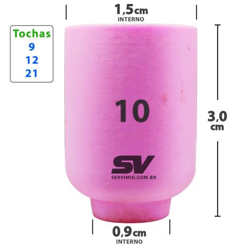 | Características | Bocal Ceramico Tig nº 10 para tochas WP 9 - TN 12 - TW 21 |