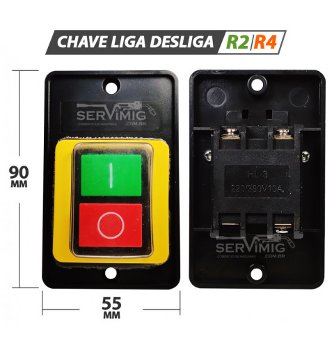 | Características | "Chave Liga - Desliga para Rosqueadeira Peça de reposição para rosqueadeira, essa chave tem a função de ligar ou desligar o equipamento Marca: Servimig Monofásico - 220V Comprimento: 9 cm Largura: 5,5 cm Aplicação: Rosqueadeira Eletrica de Tubos R2 e R4 Rosqueadeira: Merax, Ferrari, Caracol, Ridgid, Tander, Rothenberguer, Super Ego, Servimig, Br motors" |