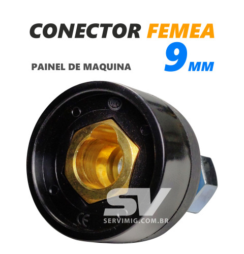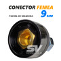 Engate femea geralmente é utilizado no painel da maquina e faz conexão com o engate macho 9mm
