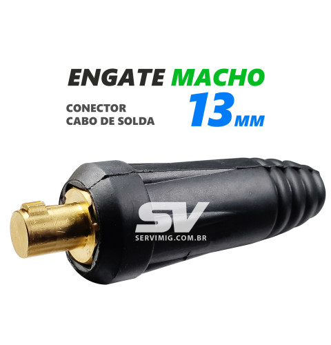 | Características | Conector ou Engate Rapido Macho 13 mm Geralmente utilizado no cabo terra ou no cabo Porta eletrodo (maquina de solda) |