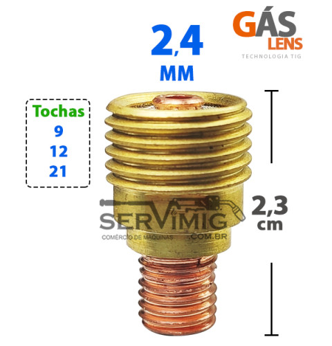 | Características | Difusor Gas lens 2,4mm para Tocha tig WP9 - TN 12 - TW21 |