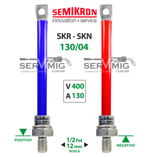 | Características | Diodo SKN e SKR 130 serve para retificar corrente alternada em corrente continua. |