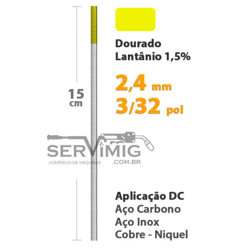 | Características | Eletrodo Tungstênio Dourado - Lantanio 1,5% O eletrodo tungstenio é univerval e utilizado em todas as tochas tig |