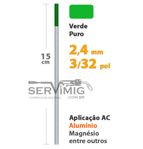 | Características | Eletrodo Tungstênio Verde - Puro 99,5% O eletrodo tungstenio é univerval e utilizado em todas as tochas tig |