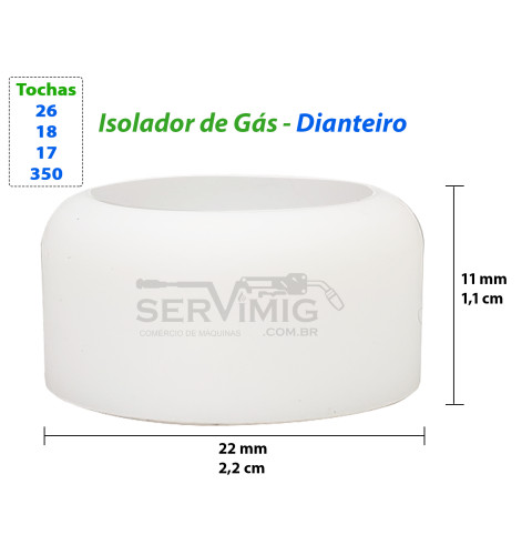 Este isolador fica na parte dianteira da tocha, em contato direto com o bocal ceramico tig, tem como função