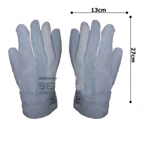 Luva de raspa de alta resistência, em geral utilizadas por usuários para proteção contra agentes abrasivos e escoriantes, carga e descarga de mercadorias, utilizada também por soldadores, madeireiras entre outras