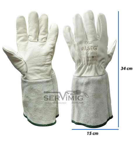 Luva argonista é confecionada na mão com vaqueta e o punho em raspa