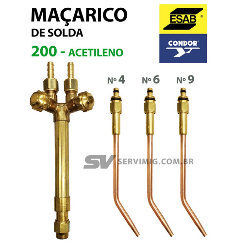 Maçarico de Solda em Latão, modelo 200, para solda com gás acetileno