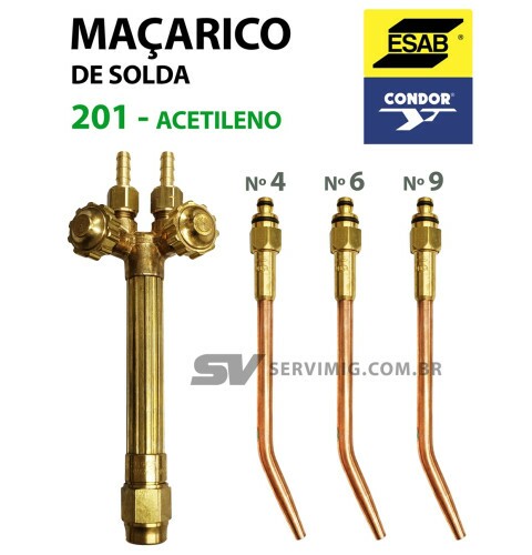 Maçarico de Solda em Latão, modelo 201, para solda com gás acetileno