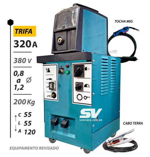 | Características | ODB - 320BL A 320BL oxigênio do brasil é um equipamento para soldagem MIG (Alumínio, inox, cobre), MAG (aços carbonos) e com arames tubulares, e é ideal para utilização em caldeiraria de médio porte, serralherias, manutenção e autopeças. Este equipamento é revisado pela Servimig |
