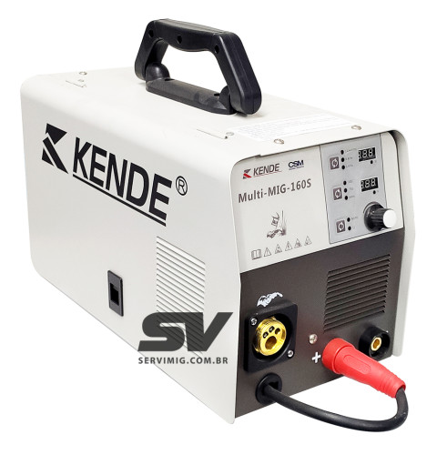 | Características | Maquina de Solda KENDE 160s Equipamento de solda portatil, leve 8.6 kg, pode ser utilizado em serviços leve O suporte de arame mig tem capacidade para bobinas de 1 ou 5 kg. Garantia de 1 ano |
