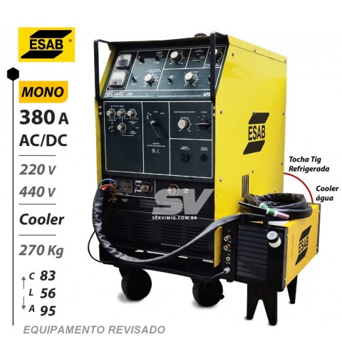| Características | Maquina Solda tig AC/DC ESAB Heliarc 306 O sistema de refrigeração Tig AC/DC Heliarc 306 é um ventilador potente, Cooler de agua e Tocha tig Refrigerada. Este é um equipamento revisado de alta qualidade e eficiencia em serviço de solda, oferecido pela Servimig |