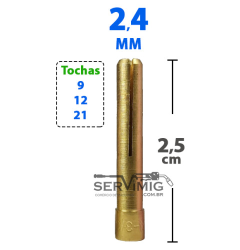 Pinça medida 2,4mm para tochas tig 9 - 12 - 21 , entre outras