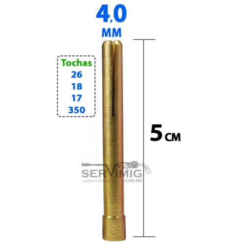 Pinça medida 4,0mm para tochas tig 26 - 17 - 18 - 350 , entre outras