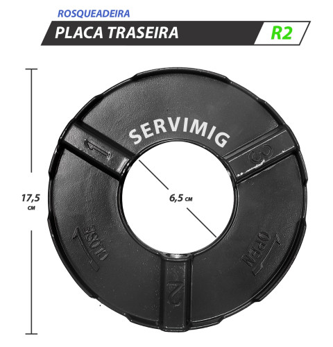 | Características | Placa Traseira da Rosqueadeira R2 A placa traseira tem a função de prender o tubo na rosqueadeira. Ao girar a placa, as castanhas irão prender o tubo. Favor conferir se a placa é compativel com a sua rosqueadeira antes da compra. |