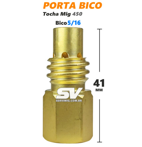 Este porta bico com rosca grossa utiliza bico mig rosca 5/16