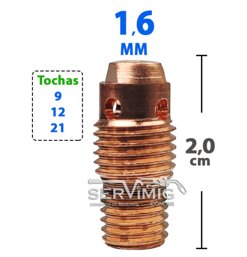 | Características | Difusor de Gás - Porta Pinça 1,6mm para tocha tig WP9 - TN12 - TW21 |