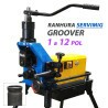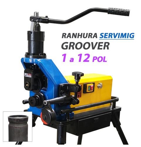 | Características | Ranhuradora de tubos Servimig - Groover A ranhura é feita em 2 tubos e juntos são presos através de um acoplamento. Este modelo é eletrico e tem capacidade de ranhura em tubos de 1 a 12 polegadas |