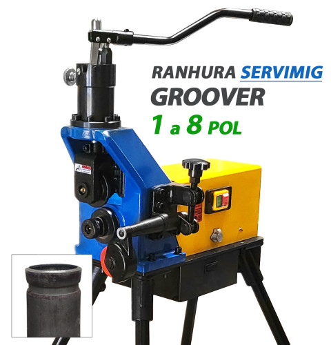 | Características | Ranhuradora de tubos Servimig - Groover A ranhura é feita em 2 tubos e juntos são presos através de um acoplamento. Este modelo é eletrico e tem capacidade de ranhura em tubos de 1 a 8 polegadas |