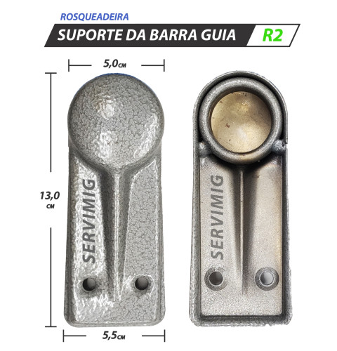 | Características | Suporte da Barra Guia - Rosqueadeira Re2 Este modelo serve somente nas rosqueadeiras re2 Verificar as medidas se são compatíveis com a sua rosqueadeira. |